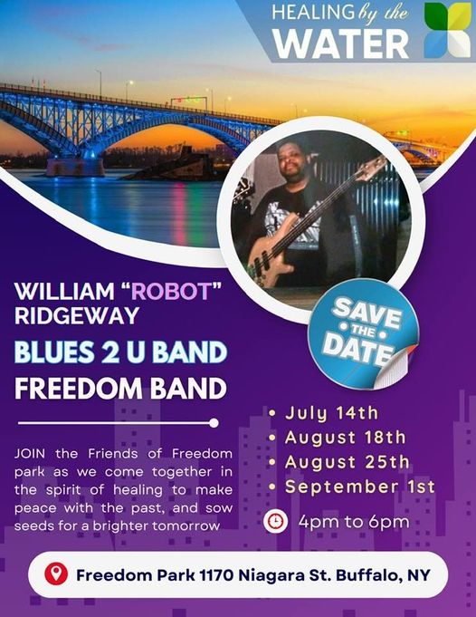 If you haven’t come down yet to Freedom Park to enjoy an installment of Healing By the Water, perhaps this look can help entice you. Each Thursday, from 5pm until 8pm, there are some of Buffalo’s best musicians (Playing for FREE!), great food and gift vendors, community partners, groovy people as well as the best vantage point for our incredible sunsets. The park fills up, but you are invited to come be a part of the joy.